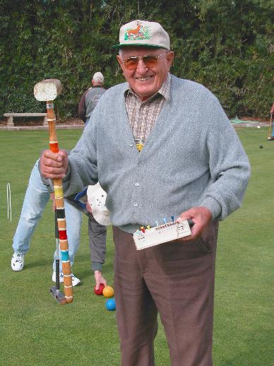 Pat got the next break at hoop 5 peeled partner through 11 and rolled a ball out going to 14. Pat hit in on the next shot and made 14. Paul finished the game by peeling Pat through 15 and pegging both balls out. A wonderful 1st place trophy was presented by Arnie Pankow to Paul for individual achievement. All agreed to do this again next year.