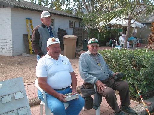 Each round, the players were reassigned new partners. The best records being paired up with the those with the worst records. Each player was awarded the points earned by the team's play. At the end of two rounds, Paul Bennett and Stan Patmor were the highest ranked players from Scottsdale and Vern Paulson, Rudy Pankow, Rodney Wayland and Marvin Gerdis were the highest ranked players from Mesa. After a brief lunch, these players shot off (nearest to hoop 4, the middle hoop) to determine high/low ranking.
